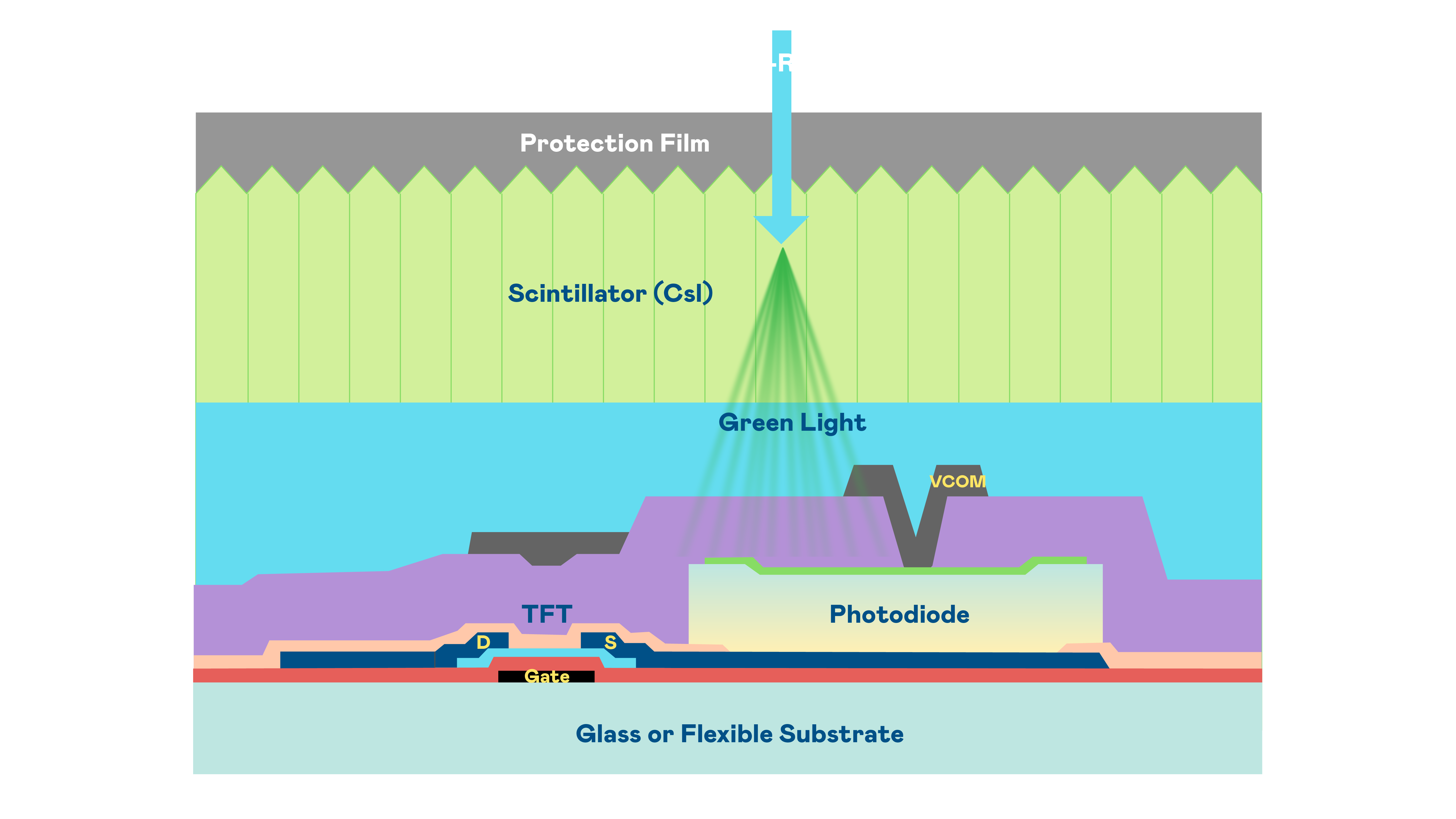 long8-龙8(龙八国际)唯一官方网站的X光影像感測陣列使用薄膜電晶體 (TFT) 作為每個像素的讀取開關,搭配光電二極體(Photodiode)的光電轉換元件,用以感測X光影像訊號。